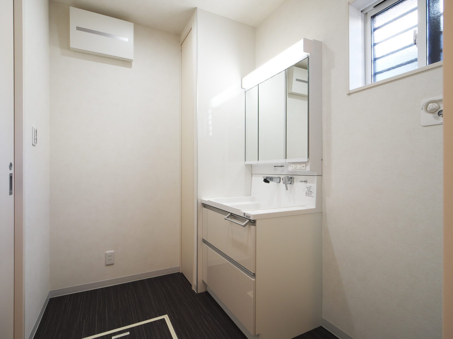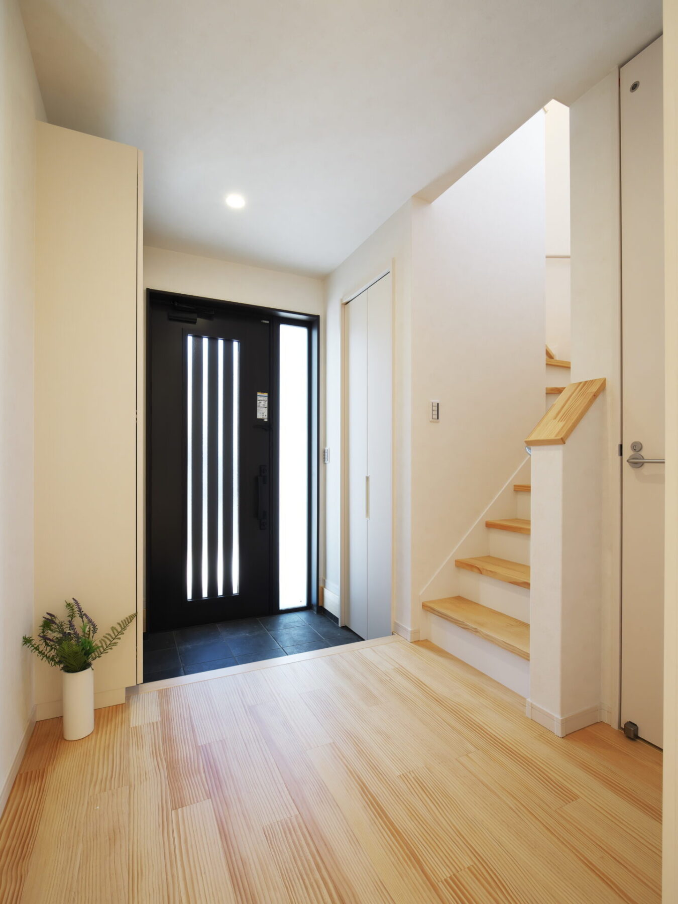 玄関ドアを開けた左手に小さな土間収納を設けました。傘を置いたりお子さまの三輪車を置いたりと使い方は自由自在。